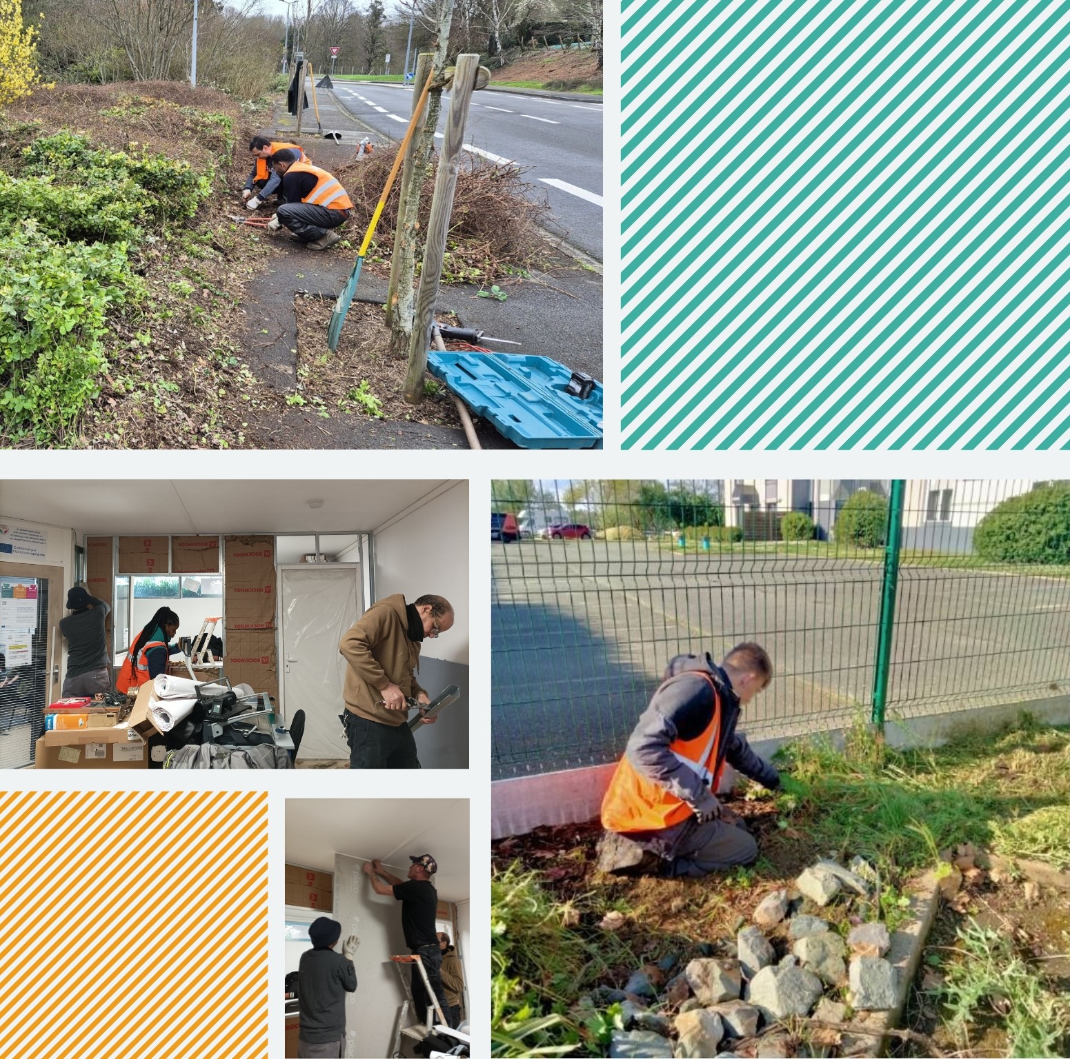 Au sein de Bativert, le service environnement et bâtiment, les salariés en transition professionnelle interviennent dans les domaines du bâtiment (peinture, revêtement mural, carrelage, maçonnerie, menuiserie, prestation de maintenance, placo / isolation, etc.) et de l'environnement (entretien de sentiers et cours d'eau, restauration et entretien de talus, engazonnement et tonte, aménagement et entretien de massifs, taille de haies, clôture champêtre, maçonnerie paysagère, etc.).